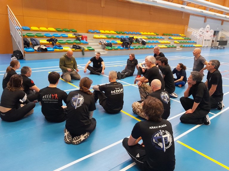 Le club KRAVolution de Ducey s'est levé tôt ce samedi 13 janvier 2018 pour participer au séminaire organisé par l'Acédémie Duboc Krav Maga à Evreux. Au programme de l'éminent Amnon DARSA : couteau (prévention, multi-agresseur et défense tierce-personne) ainsi que pistolet (prévention et défense-tierce-personne).