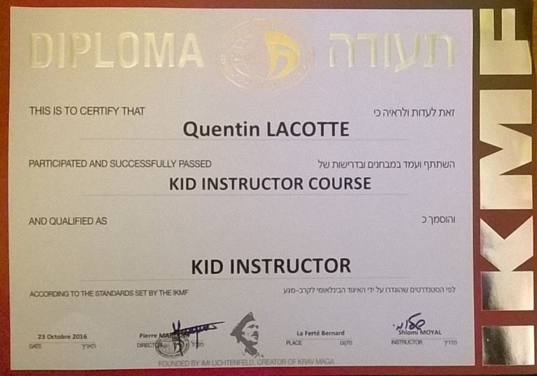 Le 15 octobre 2017, après plusieurs jours de formation, Quentin a reçu le diplôme d'Adaptive Intructor des mains de Stéphane Chatton,EIT et lead instructor, créateur du concept. L'Adaptive Krav Maga est une approche réfléchie qui permet d'étendre la pratique du Krav Maga aux invalides. Les techniques sont adaptées selon le niveau et le type de lésions (amputations, lésions vertébrales, cecité...) et le curriculum technique est ajusté en fonction de l'élève.
